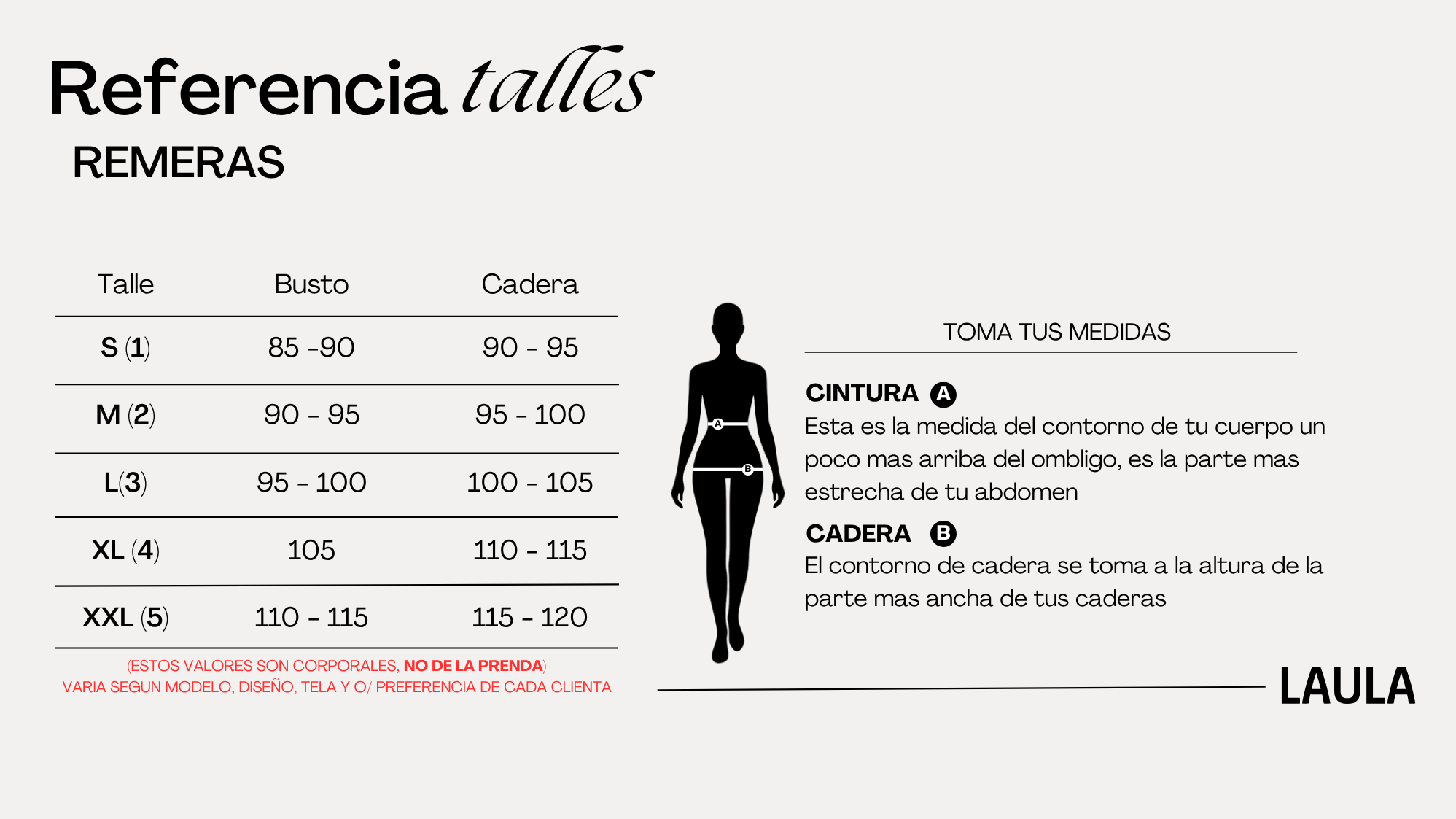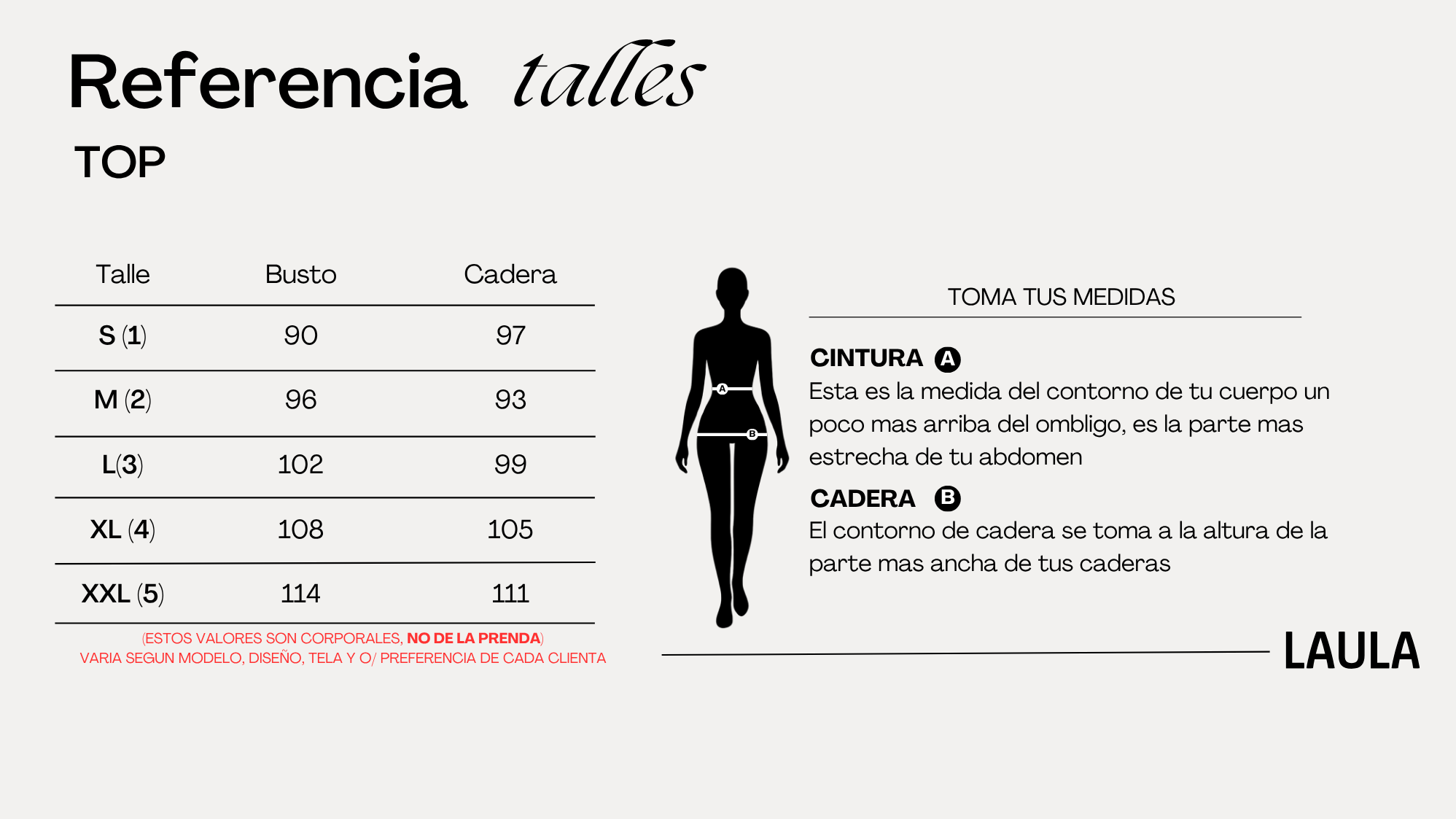 Te recomendamos comparar estas medidas con una prenda similar que ya tengas para asegurar la elección correcta. Si tienes dudas, ¡contáctanos!